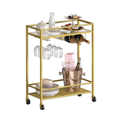 Carrito de servicio dorado personalizado con ruedas, carro rodante de 2 niveles con estante para vino, carrito de cocina, carrito de bar, carrito de vino