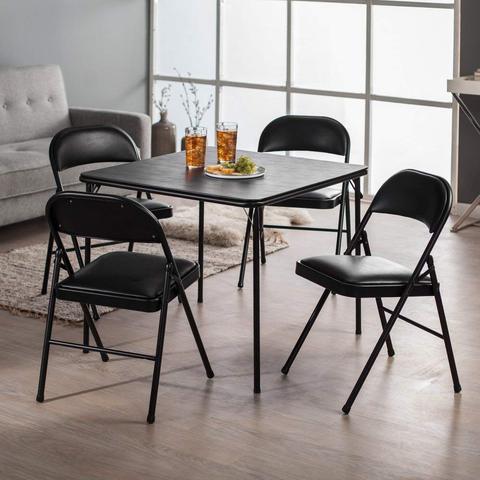 Silla de comedor de acero metálico acolchado de vinilo negro para fiesta, apartamento, hogar, cocina, oficina, jardín, sillas plegables